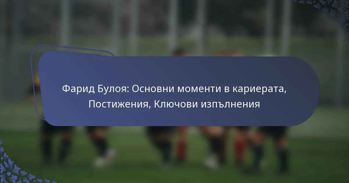 Фарид Булоя оказа значително влияние в професионалния футбол с универсалния си стил на игра и впечатляващите си представяния. Основните моменти в кариерата му включват забележителни постижения с различни клубове, ключови трансфери и забележителни моменти, които определят неговото пътуване в спорта.
